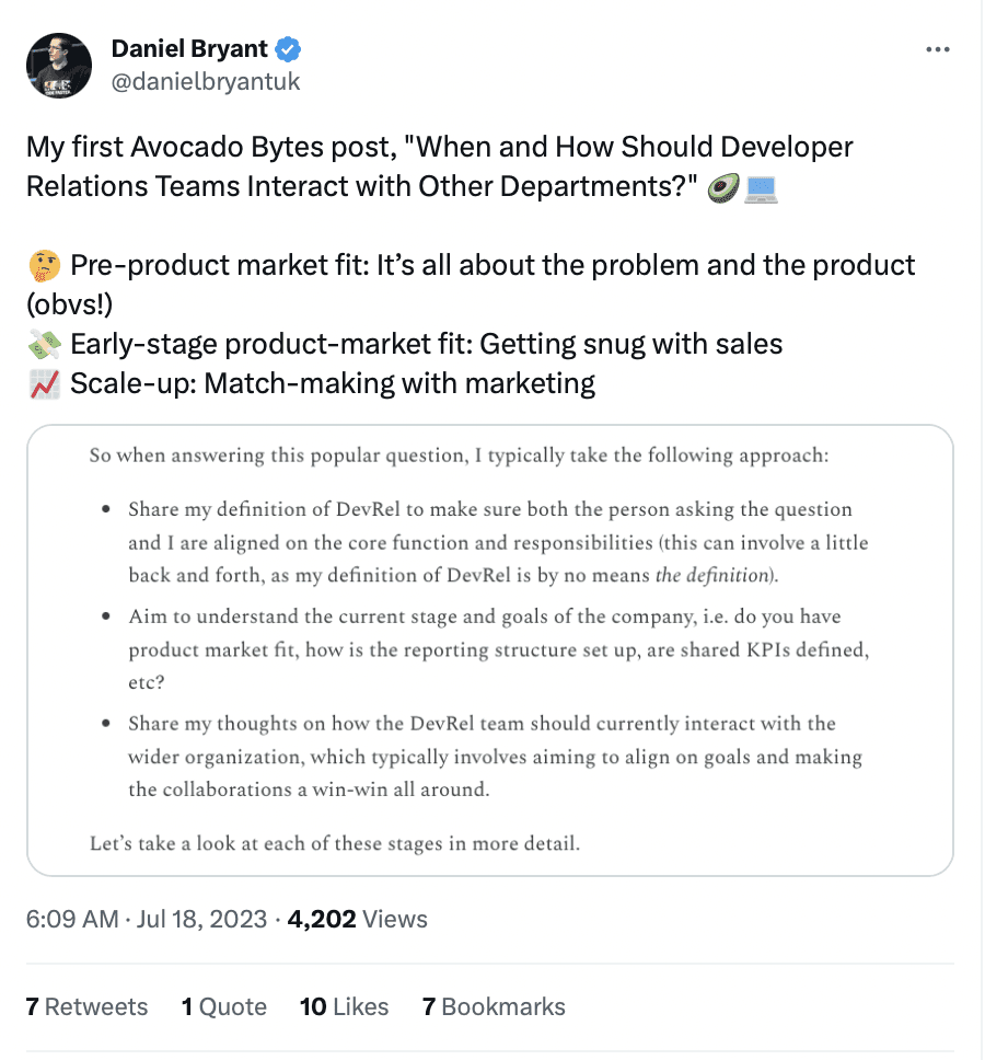 For those of y’all in DevRel, this article by Daniel Bryant is a fantastic read.